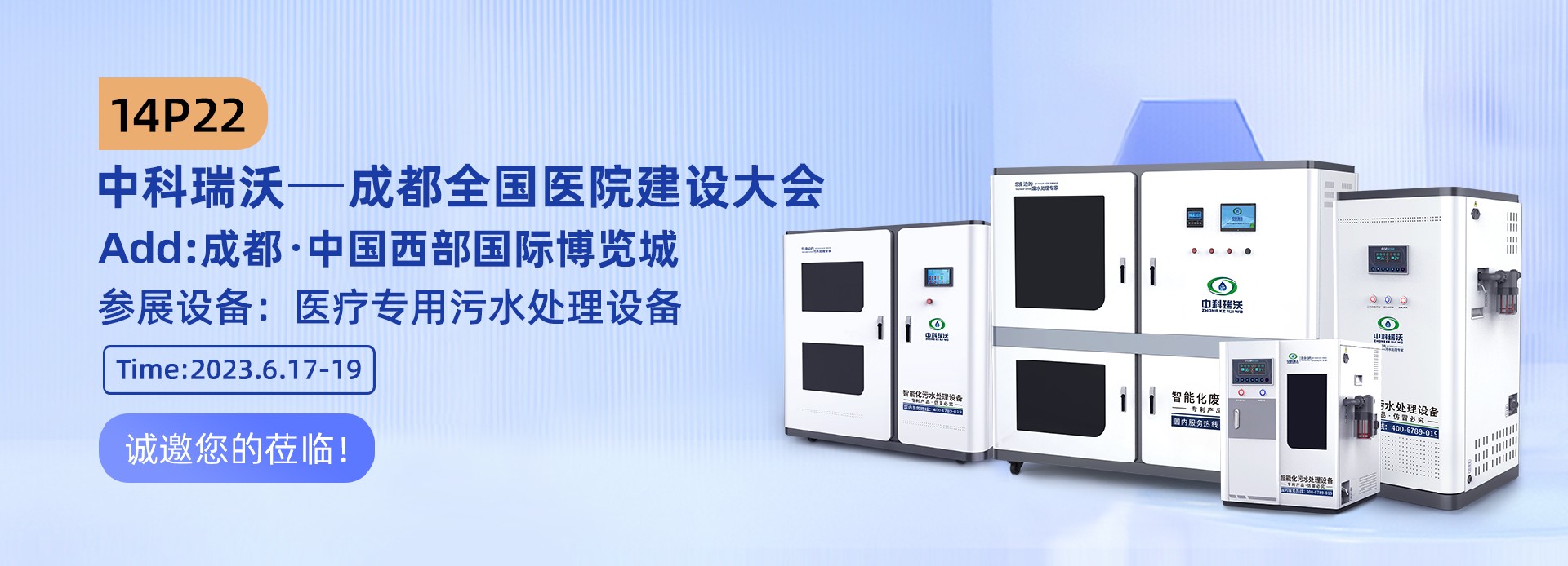 歡迎大家蒞臨中科瑞沃14P22,屆時我們會有專業(yè)的技術(shù)和業(yè)務(wù)人員,為您提供專業(yè)及時的解答和指導,不論您是針對設(shè)備的使用,或者對于污水危害的關(guān)注,再或者是對于醫(yī)療污水處理的疑問,您都可以找到我們,我們一定會提供專業(yè)領(lǐng)域靠譜的解答,熱情禮貌的招待,互利共贏的合作。